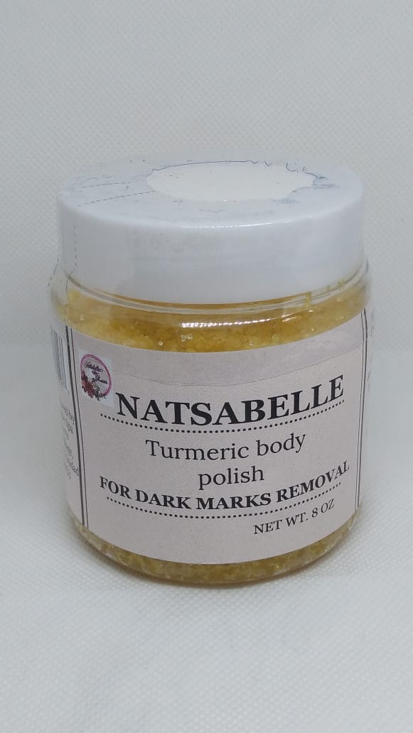 Turmeric skin Brightening body polish to remove dark marks.